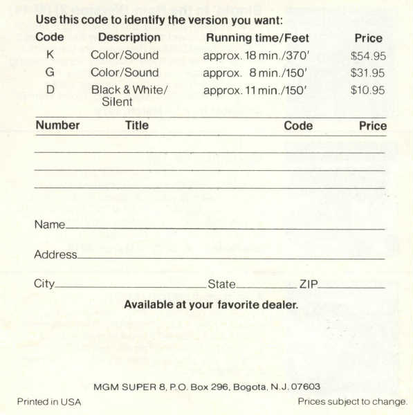 MGM Super 8 Flyer 1979