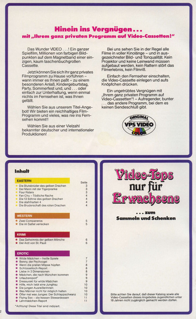 Super 8 Rezensionen - VPS Video Katalog 1984/85 (Video-Tops für Erwachsene zum Kaufen und Schenken)
