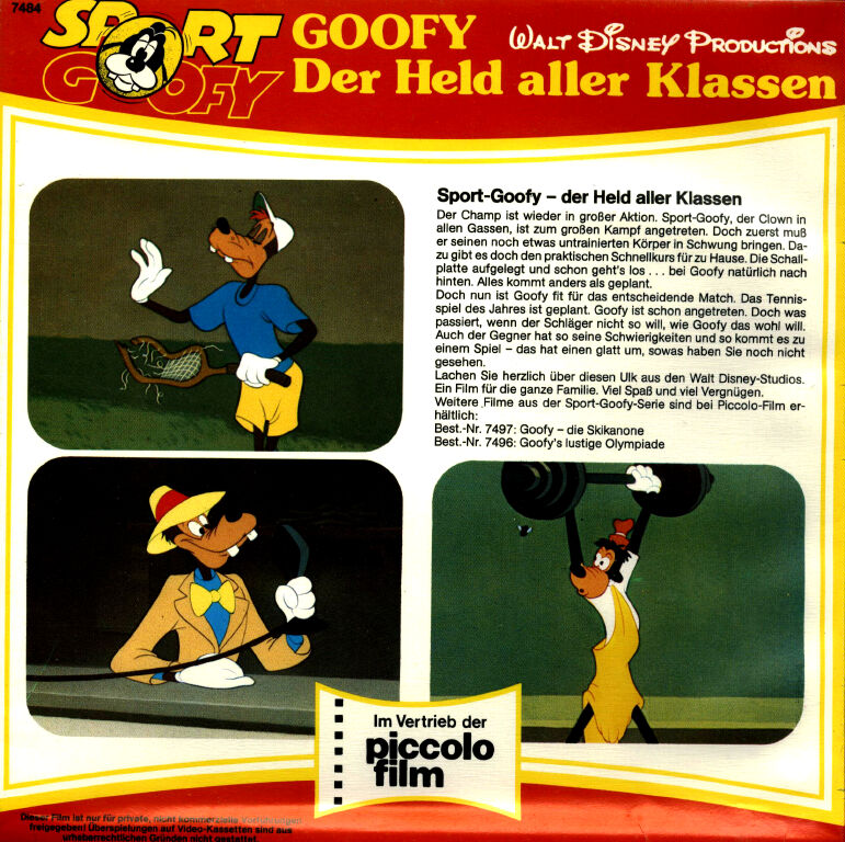 Auch zu diesem Film gibt es zwei unterschiedliche Cover von piccolo-film. Der Film kam zuerst unter dem Titel "Goofy - Der Held aller Klassen" heraus. Als piccolo-film weitere Sport-Goofy Filme veröffentlichte, versah piccolo-film den Film mit neuem Cover und Titel (Goofy, das Tennis-As) und gliederte ihn in die Reihe ein. Der Film selbst ist ein Zusammenschnitt verschiedener Goofy Cartoons. Die Bildschärfe ist gut, die Farben sind wegen der z.T. verschiedenen Szenen unterschiedlich und der Ton laut aufgespielt. Für mich der beste aller Sport-Goofy Cartoons.