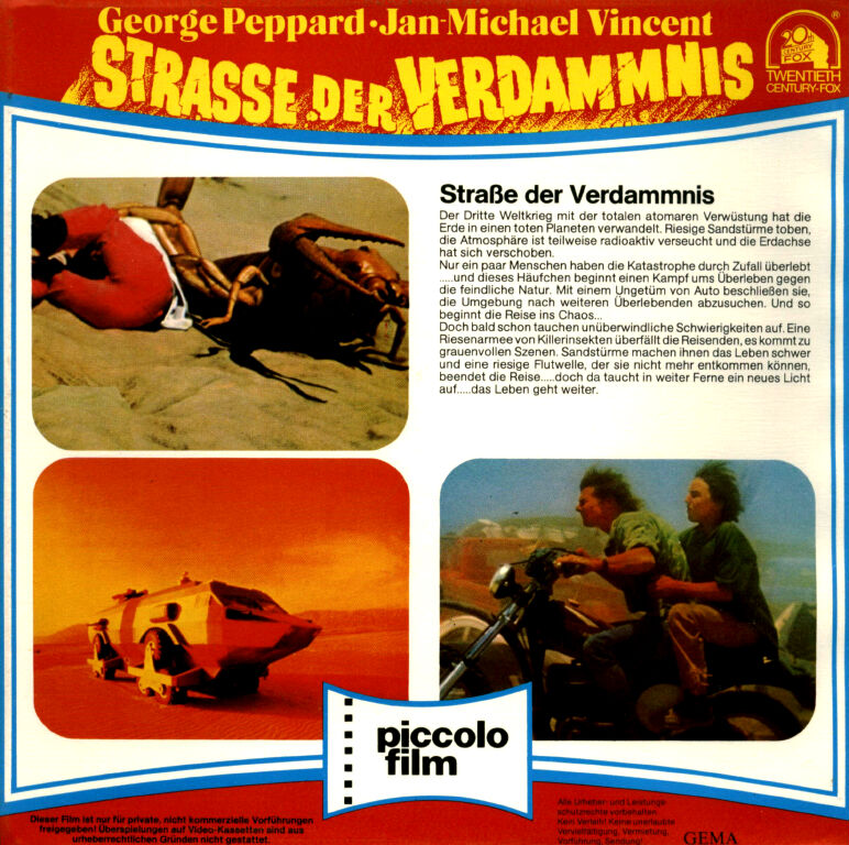 Nach dem dritten Weltkrieg gerät die Erde aus ihrer Achse. Springfluten, Erdbeben, Vulkanausbrüche und riesengroße Insekten und Reptilien sind die folgen der Zerstörung und machen den letzten Überlebenden das Überleben schwer. Mit einem speziellen Fahrzeug fahren sie auf der Straße der Verdammnis die Punkte ab, von denen sie Lebenszeichen erhalten...