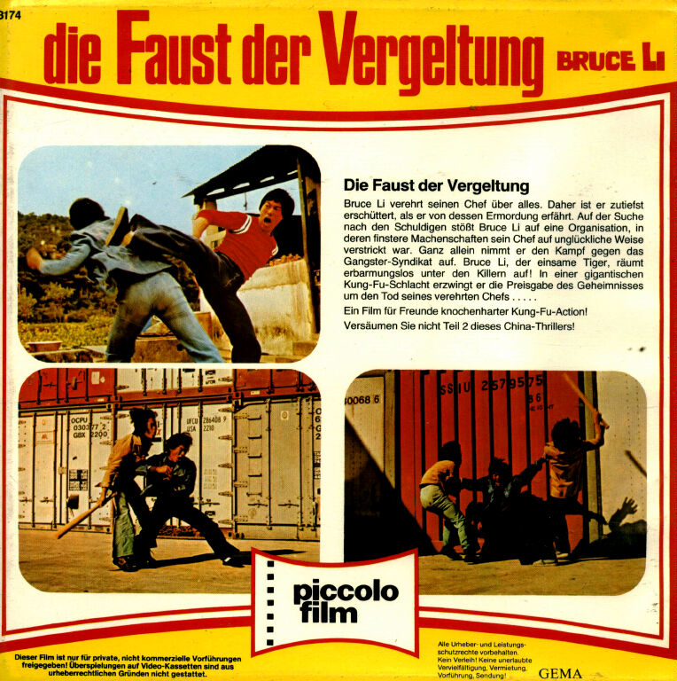 piccolo's Zweiteiler bietet zwar eine Menge Action, dafür ist die Handlung so ziemlich Langweilig. Das wird dann so nervig, das man am liebsten in den Film springen würde, um den etwas naiven Hauptdarsteller zu helfen, denn er kann wirklich nicht wissen, wo die "Ware" ist. Nach dem piccolo-film Logo folgt nur der Titel und sehen danach ein Balkenbild in guter Bildschärfe. Die Farben sind etwas rot-grün angehaucht. Der Ton ist sehr laut und klar aufgespielt. Bei den Kampfszenen vibrieren die Boxen. Am Ende wird lediglich "The End" eingeblendet.