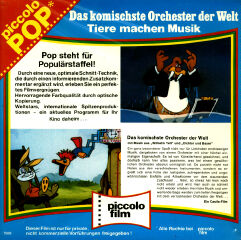 Erschien in der "Pop-Staffel" der piccolo-film. Schöne Farben, satter Ton und eine gute Bildschärfe bietet dieser Zusammenschnitt der beiden Einzeltitel "Festkonzert der Tiere" und "Mit Pauken und Trompeten".