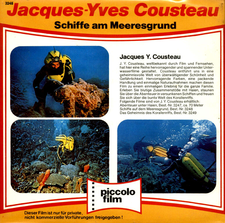 Weitere Anmerkungen: Die Filmhülle zeigt Fotos die eigentlich zur berühmten Cousteau Fernsehserie "Geheimnisse und Rätsel des Meeres", die in den 70er Jahren im deutschen Fernsehen lief. In Wirklichkeit besteht der Film aus Sequenzen, die dem 1954/55 produzierten Kinofilm "Schweigende Welt" entnommen wurden.