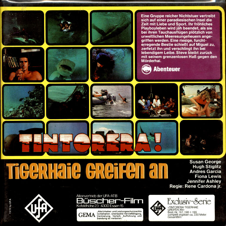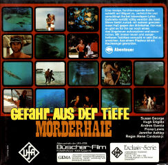 Kam 1977 ins Kino und 1978 als grandioser Dreiteiler bei der UFA raus. Nach dem UFA Logo sehen wir ein Fragment der deutschen Betitelung und es geht sofort zur Sache! Klasse Farben, gute Bildschärfe und ein guter Ton sorgen für Horror Unterhaltung mit leichten Erotik-Szenen. Allerdings sind die Szenen unter Wasser etwas zu Dunkel. Den deutschen Kinotrailer gab es auch auf Super 8.