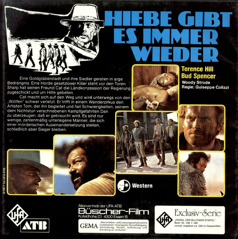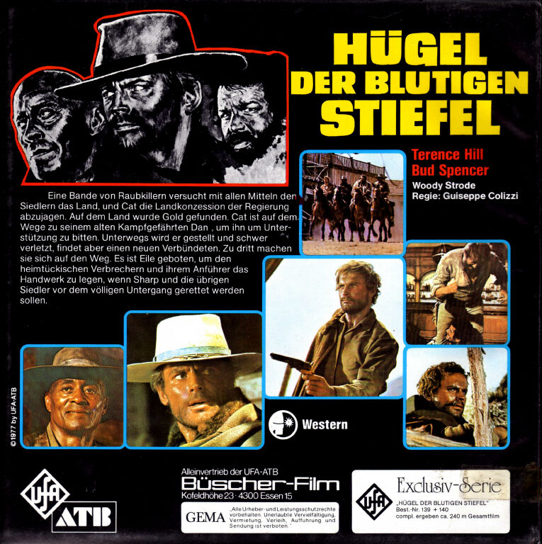 Der Zweiteiler erschien 1977 bei der UFA-ATB. Während des Vorspanns wird das UFA Logo eingeblendet. Danach präsentiert sich der Titel. Die Bildschärfe ist leider nur befriedigend, der Ton ist zwar laut aufgespielt, dennoch ist er etwas dünn. Die Farben der vorliegenden Kopie sind einwandfrei. Die Schnittfassung hat natürlich die Erstsynchronisation, in der Terence Hill von 'Peer Schmidt' und Bud Spencer von 'Benno Hoffmann' gesprochen wird. Der Zweiteiler ist gut geschnitten und zeigt den Kern des Films. Den Kinotrailer der Wiederaufführung von 1978 gab es auch auf Super 8 in CinemaScope.