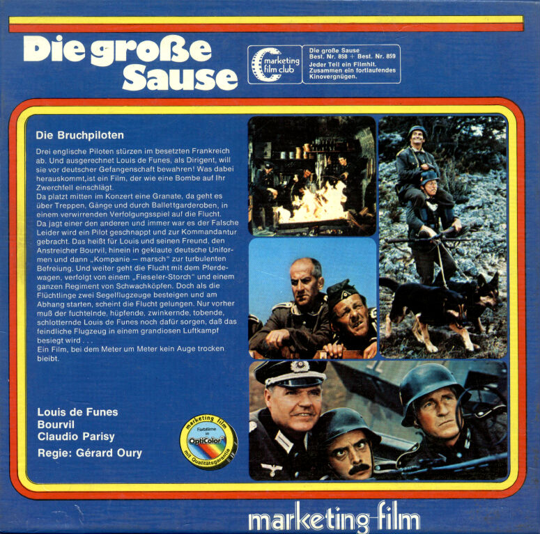 Schade das marketing-film hier nur einen Zweiteiler präsentiert! Von den vielen Gags im Originalfilm haben es leider nur sehr wenige in diese Schnittfassung geschafft. Dafür ist die Bildschärfe gut, der Ton laut aufgespielt und die Farben soweit in Ordnung. Von der Betitelung ist nicht viel übrig geblieben. "Drei Bruchpiloten in Paris", so der Erstaufführungstitel der Constantin-Film (15. September 1967) wurde für die Wiederaufführung am 19. Dezember 1974 in "Die große Sause" der Tobis umgetitelt und durch Rainer Brandt komplett neu synchronisiert. Diese neue Fassung befindet sich auf der Schnittfassung.