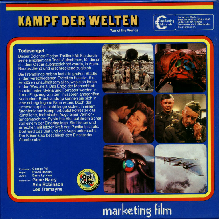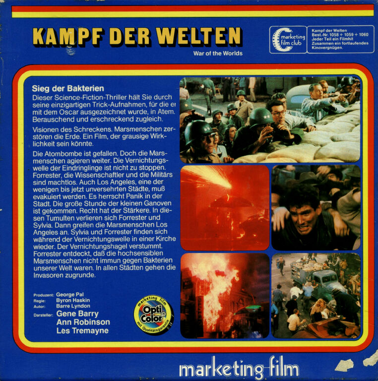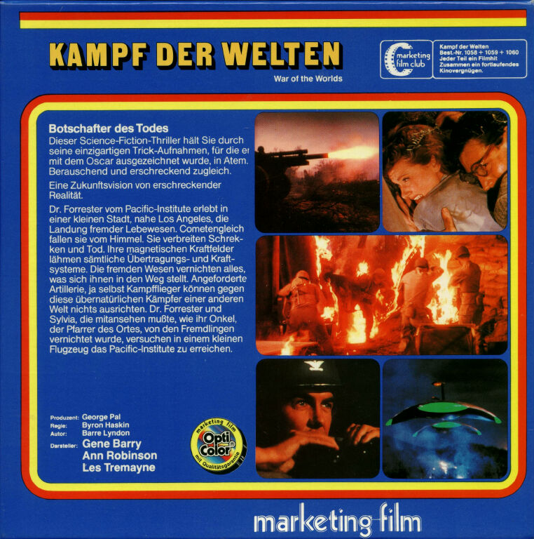 Spannende Science-Fiction-Unterhaltung nach dem Roman von H. G. Wells. In einer Szene zu Beginn des Films als der erste Meteor auf die Erde stürzt, wurde auf einem Baum in der Bildmitte eine Figur von Woody Woodpecker eingefügt. Dies ist ein Tribut des Produzenten George Pal an seinen Freund Walter Lantz, dem Schöpfer dieser Cartoon-Figur. [Filmkritik].