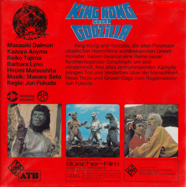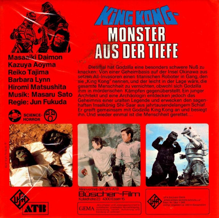 UFA-ATB präsentiert hier einen sehr gut geschnittenen Zweiteiler, wenn auch die Hauptdarsteller, (z.B. Godzilla), hier etwas zu kurz kommen. Das UFA-ATB Logo und der Titel wird in den bereits laufenden Film eingeblendet, statt der Originalbetitelung. Der Schnitt ist gut und verständlich angelegt und zeigt einen schnellen Handlungsverlauf. Die Bildschärfe ist gut, der Ton laut und klar aufgespielt und auch die Farben sind noch voll in Ordnung. Ein absolut empfehlenswerter Film!