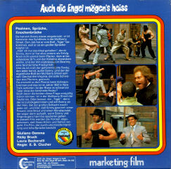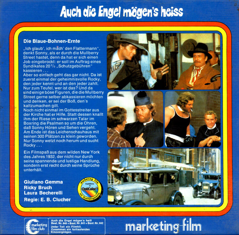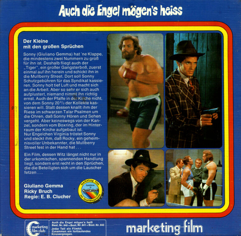 Die offizielle Fortsetzung zu 'Auch die Engel essen Bohnen' muss leider ohne Bud Spencer auskommen, unterhält dennoch bestens und überzeugt mit gutem Schnitt und verständlichem Handlungsverlauf. Kopiert wurde mit Balken. Nach dem marketing-film Logo bleibt nur ein Fragment der Betitelung übrig. Die Schärfe und der Bildstand sind klasse, nur leider hat die vorliegende Fassung bereits einen Rotstich mit Restfarben. Aus diesem Grund werden diese auch nicht bewertet. Damit ist 'Auch die Engel mögens heiss' optimal für einen langen Kinoabend im Doppelpack.