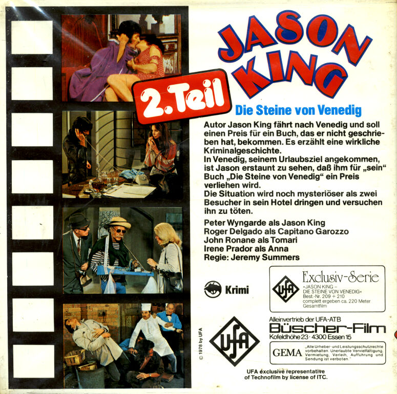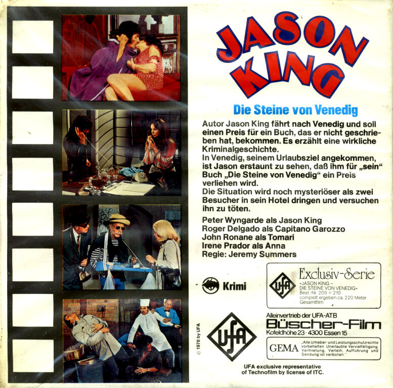 Nachfolgeserie von "DEPARTMENT S" wieder mit Peter Wyngarde. JASON KING hatte noch mässigeren Erfolg. Hierzulande wurde auch diese Serie mit lustigen Dialogen von Rainer Brandt aufgelockert. Jürgen Thormann lieh Peter Wyngarde seine Stimme. Von den insgesamt 26 Folgen strahlte das ZDF nur 13 aus.