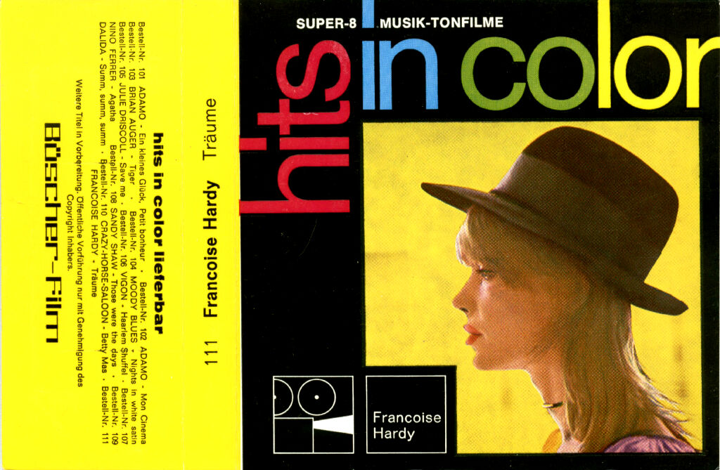 Büscher-Film, später UFA-ATB, präsentierte mit der Serie "HITS IN COLOR" diverse Musiktitel. Eigentlich ein langweiliger Clip. Der Ton ist klar und laut aufgespielt, die Bildschärfe ist gut, die Farben noch ansehnlich.