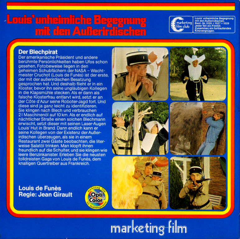 Hier präsentiert marketing-film eine sehr schöne Kopie, welche im Gegensatz zur Kinofassung sehr gut unterhält und es wirklich Spaß macht Louis de Funés in einem seiner späten Filme zu sehen. Viele lustige Szenen sind enthalten, vor allem diese, in denen er als Nonne verkleidet auf dem Fahrrad Richtung Kloster ist und sich später seinem Vorgesetzten gegenüber verstellen muss. Alle 3 Teile sind auf Polyester kopiert, ein leichter Stich ins bräunliche ist zu erkennen, aber mit noch schönen Farben und einer guten Bildschärfe. In einer seiner ersten Rollen sieht man auch in einer Szene auf der Wache spielend, den 'Franzosen' aus Matrix. Schade das dies der einzige Film der 'Gendarmen' Reihe ist, welche auf Super 8 erschienen ist. Sehr zu empfehlende Fassung, nicht nur für Fans. [H.K.]