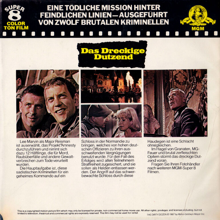 Neben dem bei UFA erschienenden Dreiteiler brachte marketing-film separat auch diesen MGM Einteiler auf den Markt. Dieser beinhaltet Szenen, die in den Dreiteiler eingeschnitten werden können. Der Film startet mit dem MGM Löwen und steigt sofort in die Handlung ein. Anschliessend erfolgt die Original Betitelung in gekürzter Form. Er endet mit der actionreichen Flucht im Militärwagen, (die Hospital Szene am Schluss ist nicht mehr enthalten). Der Original Abspann wurde in gekürzter Form übernommen. Kopiert wurde in Vollbild. An dieser Kurzfassung gibt es eigentlich nichts zu bemängeln. Hervorragender Schnitt , einwandfreier Bildstand, sehr gute Bildschärfe, ein laut aufgespielter sauberer Ton. Kopiert wurde auf Eastman Material, die Farben sind bei der vorliegenden Kopie immer noch gut bis sehr gut, der Rotstich hat hier noch keine Spuren hinterlassen. Als Alternativfassung zum Dreiteiler empfehlenswert.
