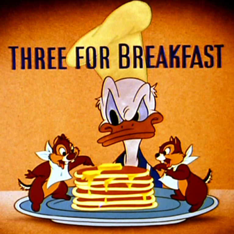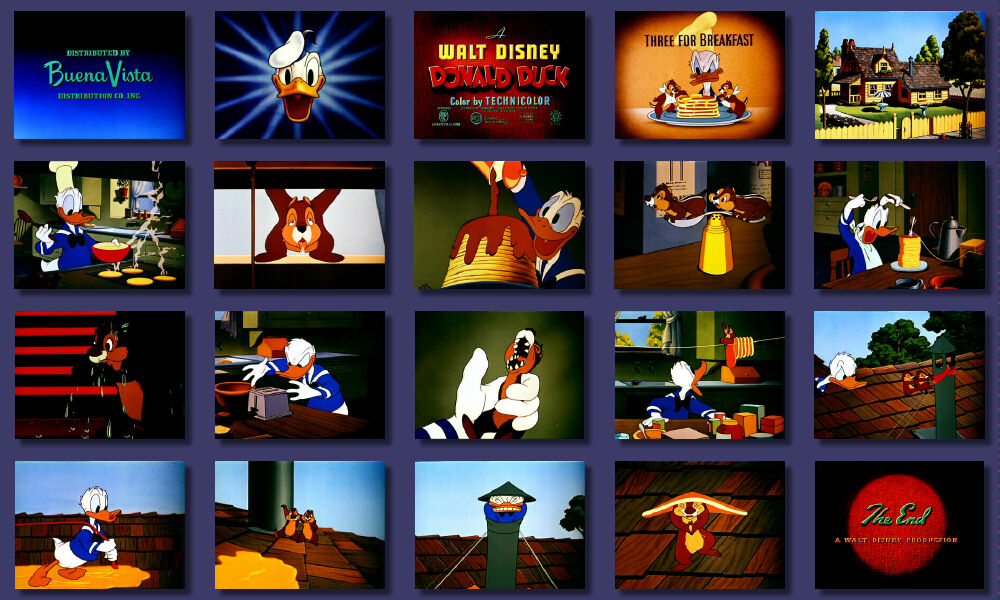 Chip und Dale (A. + B-Hörnchen) wollen Donalds Frühstück klauen. Donald ärgert beide und schließlich gewinnen diese.