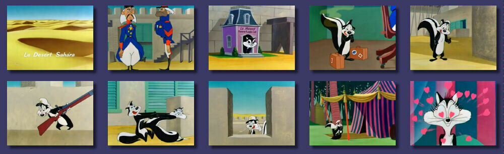 Pepe Le Pew meldet sich zur französischen Fremdenlegion und verliebt sich in eine Katzendame.