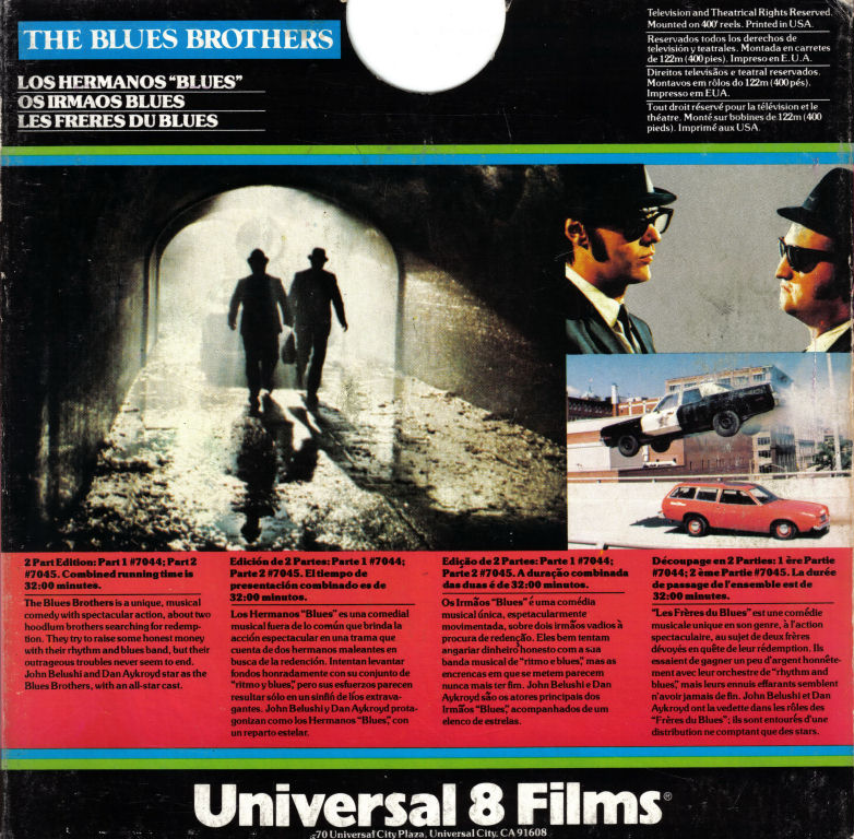 In Deutschland leider nie erschienender Zweiteiler aus dem Hause Universal 8. Titel gekürzt vorhanden.Tolle Schnittfassung, wenn man das Original nicht kennt. Ansonsten ist man enttäuscht, da alle Musiknummern mit den Stars (Aretha Franklin, Ray Charles usw.) fehlen. Qualität ist Top; gute Bildschärfe, Farben leicht rötlich, aber noch voll gut zu sehen. Super selten zu bekommen und man muss tief in die Tasche greifen, meist um die 100 Euro oder sogar teurer. Die Handlung ist ohne Probleme nachvollziehbar. Zur Handlung dieser Schnittfassung: Jake verlässt das Gefängnis, wird von seinem Bruder abgeholt und fahren zur Nonne. Kurze Diskussion, 5000 Dollar werden gebraucht. Dann fahren sie los, unterwegs hält sie die Polizei an und dann die geniale Verfolgungsjagd durch das Kaufhaus ist komplett enthalten. Die Nazis werden eben ins Wasser befördert, kurzes Gespräch mit dem Typ der Ihnen den Gig verschaffen soll und schon sind sie beim Konzert. Zu hören sind zwei Songs von Ihnen und bekommen 10.000 Dollar von einem, der mit Ihnen eine Platte machen will. Dann die Verfolgungsjagd der Polizei und der Nazis. Finale, wo sie das Geld abgeben und verhaftet werden. Dann kommt noch der Song im Gefängnis. Es folgt der Nachspann und Vorstellung, wer im Zweiteiler was spielt (alle Musikstars wurden entfernt). [A.C.].