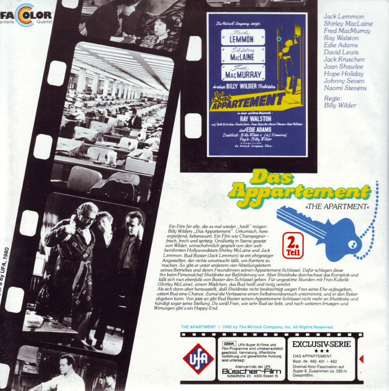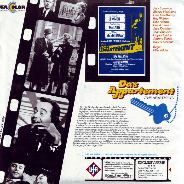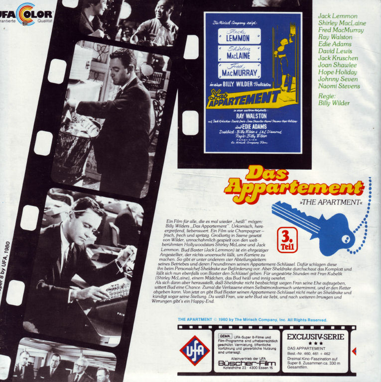 Darsteller: Jack Lemmon, Shirley MacLaine, Fred MacMurray, Ray Walston, David Lewis, Jack Kruschen, u.a.