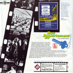 Alle drei Akte beginnen mit einem kurzen UFA-Vorspann, dann geht es direkt zum United-Artist-Logo und zum Original-Filmvorspann über, welcher etwas gekürzt ist. Alle Hauptrollen und natürlich Billy Wilder als Produzent und Regisseur werden genannt. Kein Abspann bei allen drei Teilen. Das Bild hat durchgängig oben und unten schwarze Balken und ist schön klar, kontrastreich und von der Schärfe ok. Der Ton ist gut verständlich und laut aufgespielt. Insgesamt eine gelungene Schnittfassung; man kann der Handlung sehr gut folgen. Einzig, dass Fran Kubelik (Shirley McLaine) die Geliebte von Mr. Sheldrake (Fred MacMurray) ist, erfährt man eher beiläufig (anders als im Originalfilm). Aber insgesamt ist der Film gut durcherzählt. Zum Ende hin ist dem UFA-Schnittmeister dann aber entweder die Zeit oder die Geduld abhanden gekommen, denn der Film endet vor der Silvesterfeier, wodurch die Handlung ein komplett anderes Ende erfährt. Nämlich nicht mehr das Happy-End des Original-Filmes, in dem C.C. Baxter (Jack Lemmon) doch noch seine Fran bekommt, sondern ein recht offenes Ende, in dem es scheint, als ob Fran weiterhin bei Mr. Sheldrake bliebe. [Th.Ge.]