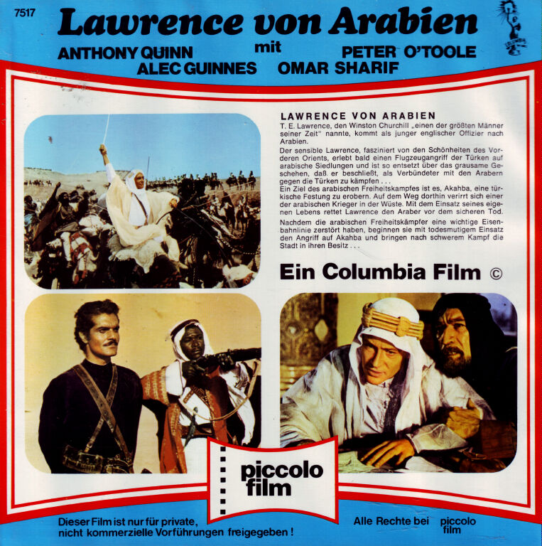 Darsteller: Peter OToole, Alec Guinness, Anthony Quinn, Jack Hawkins, Jose Ferrer, Anthony Quayle, Omar Sharif , u.a.