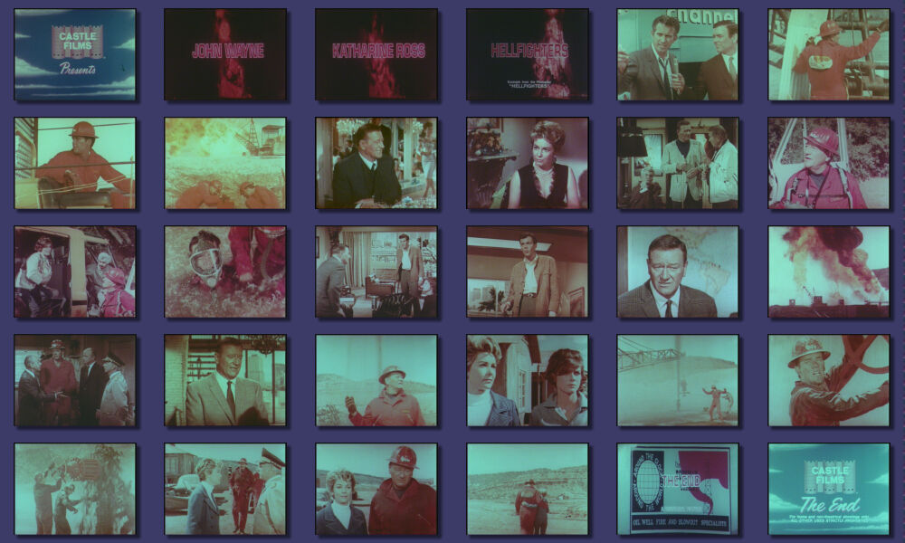Super Schnittfassung von Universal 8, der Titel ist fast komplett vorhanden und in Scope, danach geht es in Vollbild weiter. Die Bildschärfe ist sehr gut, die Farben sind minimal rotstichig, aber noch sehr schön anzusehen. Die Fassung wurde auf Polyester kopiert. Der Schnitt ist ziemlich schnell und man erfährt von allem etwas, muss aber aufpassen, um der Handlung folgen zu können. Der Unfall inklusive der Rettung durch John Wayne ist genauso enthalten, wie die Löscharbeiten bei den Ölbohrungen. Für die Liebesgeschichte haben die Cutter auch noch Zeit gefunden, echt genial gemacht für knapp 8 Minuten Laufzeit. Es gab auch noch eine Komplettfassung von Universal 8, allerdings ist diese Super selten. Zu dem gab es auch noch eine 60 Meter Fassung von Castle Films in Color/Ton [Nr. 9146] und eine 60m Schwarz/Weiß Stummfassung [Nr. 1072]. Ob der Schnitt identisch ist, ist mir nicht bekannt. [A.C.]