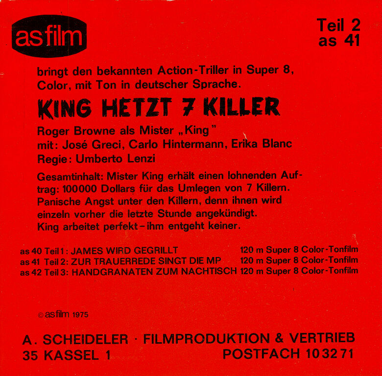 Super-8 Vertrieb: as-film; Nr. 40, 41 und 42 (3 x 120m color / ton)
