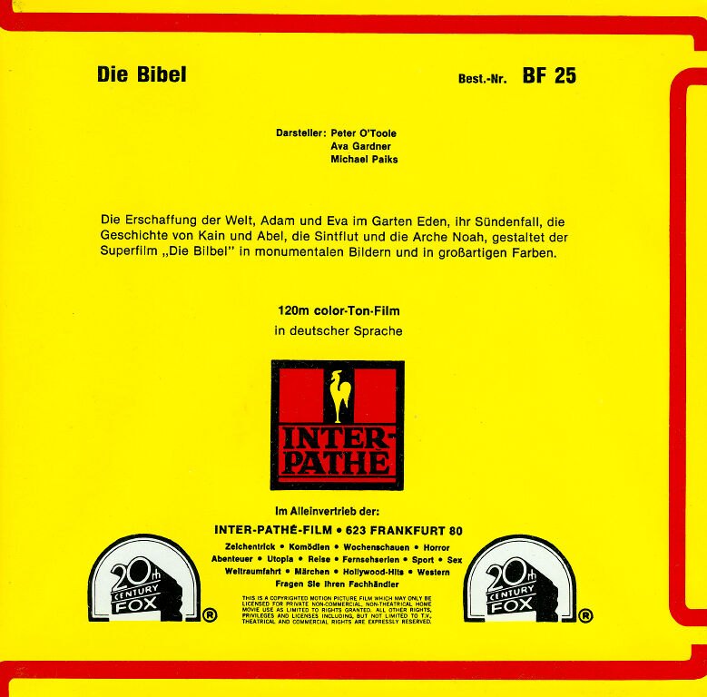 Super-8 Vertrieb: Inter-Pathé BF 25 (1x 120m color / ton)