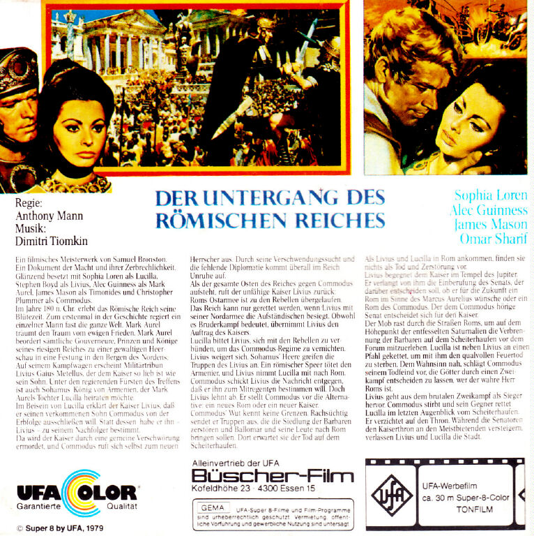 Darsteller: Sophia Loren, Stephen Boyd, Alec Guinness, James Mason, Christopher Plummer, Mel Ferrer, Omar Sharif, u.a.