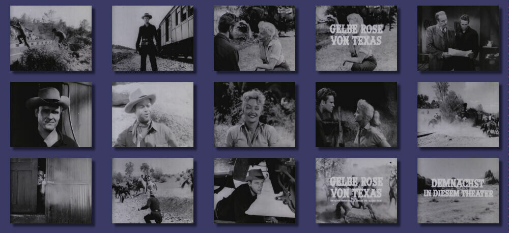 Der deutsche Uraufführungstrailer dieses B-Westerns hat es in sich! Eine gute Szenenauswahl, einige Schrifteinblendungen und ein Sprecher, der zügig kommentiert, sowie das Lied "Yellow Rose Of Texas" machen ihn Sehenswert. Ein guter Schwarz-Weiß Kontrast, eine gute Bildschärfe und einen laut aufgespielten Ton - besser gehts nicht. Wer die deutsche Komplettfassung hat, sollte sich auch diesen Trailer ins Archiv legen. Macht großen Spaß! Länge: 1 Minute und 55 Sekunden.
