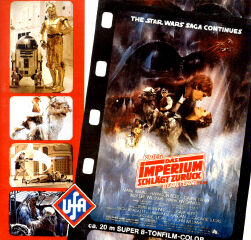 Bereits vor dem deutschen Kinostart am 12. Dezember 1980 veröffentlichte die UFA zu ihrem Zweiteiler (der aber erst 1981 auf Super 8 erschien) einen angeblichen Kinotrailer. Besser als nichts dachten die Fans und somit wurden von diesem UFA-Trailer hunderte verkauft. Es war schon faszinierend erste Szenen aus dem zweiten Star Wars Film im eigenen Wohnzimmer oder Heimkino sehen und zeigen zu können. Allerdings handelt es sich hier vielmehr um einen Ankündigungstrailer [Teaser], statt einem richtigen Haupttrailer. Trotzdem macht der Trailer Spaß! Kein UFA Logo vorab, sondern der Trailer präsentiert sich einfach so. Die Bildschärfe des Vollbild-Trailers ist gut, der Ton hätte besser sein können und die Farben sind in Ordnung. Länge: 2 Minuten und 10 Sekunden.